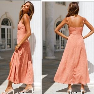Hello Molly Glowing Girl Maxi Dress Peach Orange Boho Floral Print Size S or 4