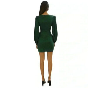 Tags: Mini Deep V-Neck Balloon Sleeves Party Hostess Festive Event Cocktail Sexy Chic Dark Romantic