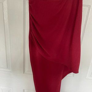 This off-the-shoulder design features an easy-grip lining along the bodice for a secure fit and removable straps. There is a hidden zipper on the back. The asymmetric skirt flatters your figure with light ruching on the side and an extravagant slit. Glam it up with a bejeweled clutch and sky-high heels.