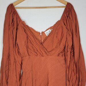 Hello Molly Medium Coming Of Age Mini Dress Rust Orange Long Sleeve V-Neck