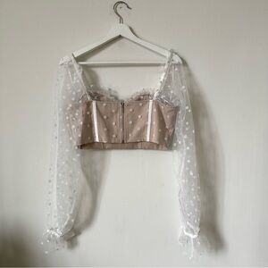 Hello Molly Mesh Dot Long Sleeve Crop Top Bustier Corset In Nude Size US 8