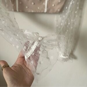 Nude Top / White Polka Dot Mesh Sleeves