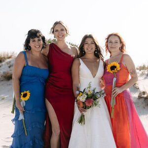 Wore this dress one time for my best friend's wedding. It was such a fun dress, very flattering and I felt very comfortable in it. The dress has been dry cleaned and is still in perfect condition (only wore one time for the wedding!). Size Small for US 4-6. I'm 5'7, 135lbs.