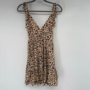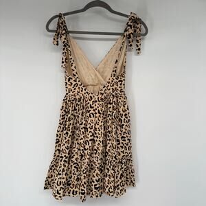Hello Molly Now You Know Dress Women's Sze S Beige Black Leopard Print Wrap Mini