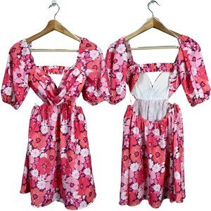 Hello Molly On The Beat Floral Cut Out Mini Dress Women's 2 Pink Open Back Party