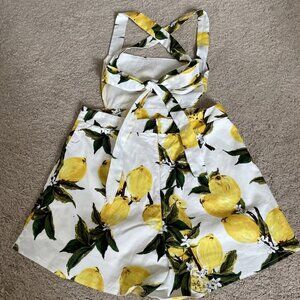 Hello Molly Romper Shortalls Overall Women's L Yellow Lemon Print Novelty Summer