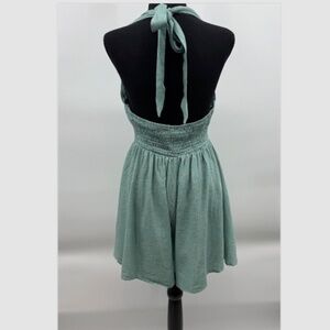 Hello Molly Romper Women Medium NEW Green Linen Blend Halter Sleeveless Short