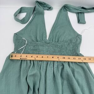 Style: Hello Molly Romper Women Medium NEW Green Linen Halter Tie Sleeveless Short