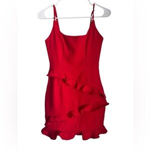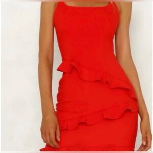 Name/Details: Hello Molly ruffle and fitted silhouette mini dress, adjustable straps, back zipper closure.