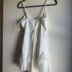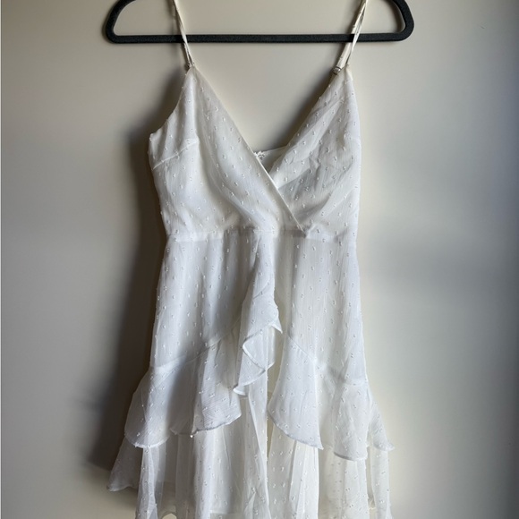 Elegant white dress with ruffled layers and spaghetti straps. Perfect for summer occasions. Or college graduation!