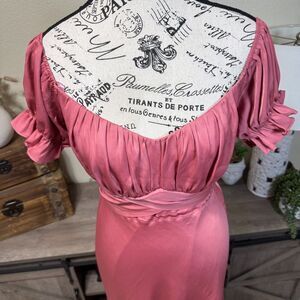 Hello Molly Sky Child Maxi Off Shoulder Satin Dress Rose Pink Sz 8 Coquette
