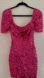 Dazzle in this shimmering pink mini dress. Features a sequin design and elegant draped sleeves. Perfect for a night out.