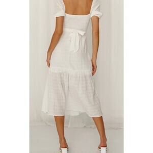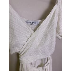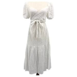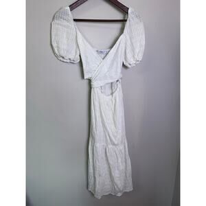 Hello Molly White Asymmetric Wrap Puff Sleeve Cut Out Midi Dress Size S