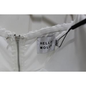 Elegant strapless midi dress. Features a fitted bodice. Flared hem with mesh detail. Perfect for special occasions.