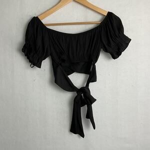 Hello Molly Womens Black Puff Sleeve Tie back Crop Top Small