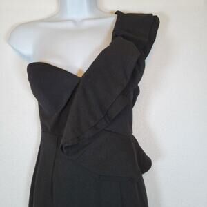 Hello Molly Womens Caruso One-Shoulder Ruffle A-Line Midi Dress Size Small Black