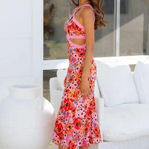 Hello Molly Women's Cutely Preppy Pink Floral Cutaway Midi Dress Sz 6