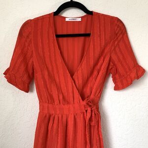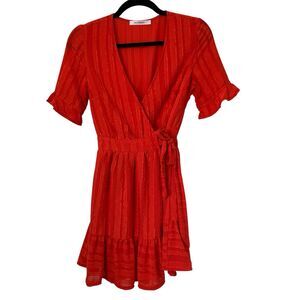 Hello Molly Wrap Dress 6 Red Mini Ruffle Flirty Glam Feminine Romantic Party Fun