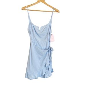 Hello Molly song on the minute blue faux wrap ruffle mini dress size 6