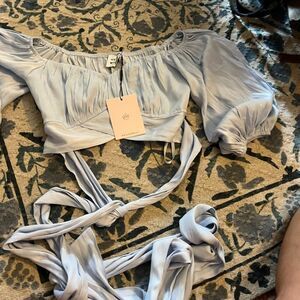 Hello Molly Danced Until Four Crop Top Steel Blue 4