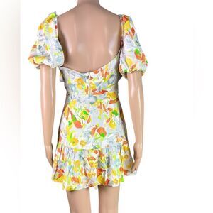 Hello Molly Yellow & Orange Floral Dress with puffy sleeves and cut outs, Size Small, No flaws (UC)