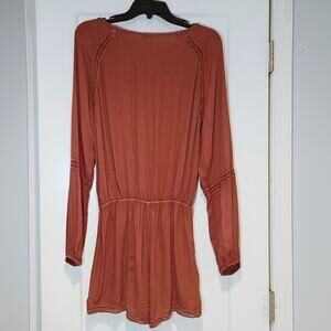 Hello Nite Long Sleeve Romper In Burnt Rust