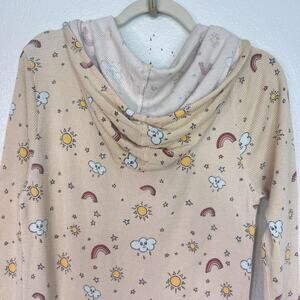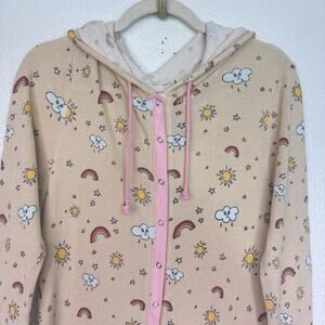 hello nite jumpsuit womens small rainbow cloud waffle knit one piece hooded pajama loungewear cute
