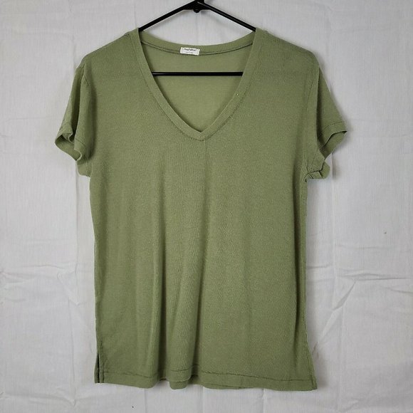 Hello Nite! Womens Olive Green Short Sleeve V Neck Basic T Shirt Size Small
