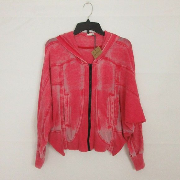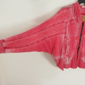Hello Nite! Zip Up Jacket Small Vintage Flag Red Dolman burn out light weight S