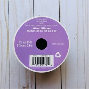 Burlap wired ribbon that says Hello Spring in plaid print writing.