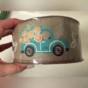 Hello Spring Burlap Ribbon NWT