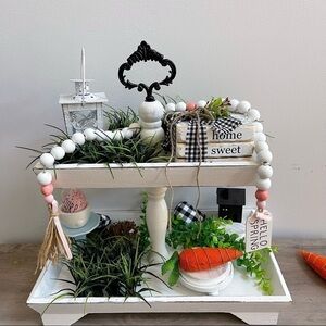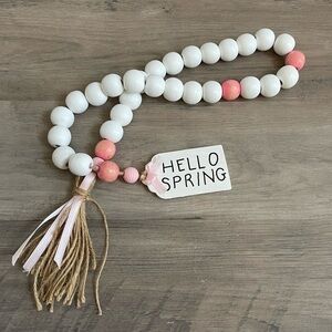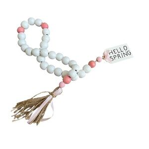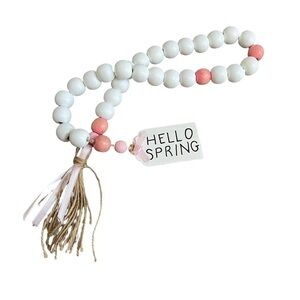 Hello Spring Farmhouse Tassel Wood Bead Tier Tray Decor
