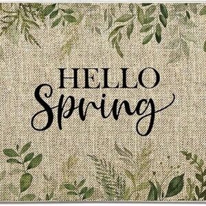 Hello Spring Leaves Farmhouse Indoor Outdoor Entrance Non Slip Door Mat 27 x 17
