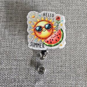 Hello Summer Watermelon Sunshine Pink Retractable Name Badge ID Reel Holder