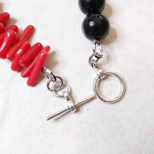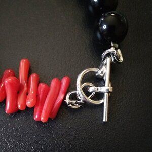 I've got 1 of these substantial, heavy and chunky bracelets left.These beauties are made with big, genuine black Jasper beads, rich red Coral Branches and a thick, chubby Quartz Heart.