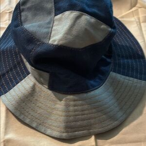 Stylish patchwork denim bucket hat in shades of blue. Perfect for adding a trendy touch to any outfit. New without tags