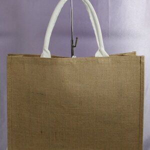 Hello Weekend Jute Tote Bag – Eco-Friendly Burlap Shoulder Bag with White Handle