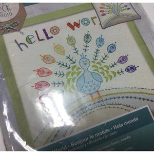 Hello World Peacock Embroidery Kit Dimensions New 10" x 10" Cathy Heck Studio