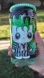 Unique tumbler featuring a green and black character design. Comes with a decorative lid.
