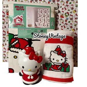 Hello kitty Christmas Shower Curtain, dispenser and hand towel set