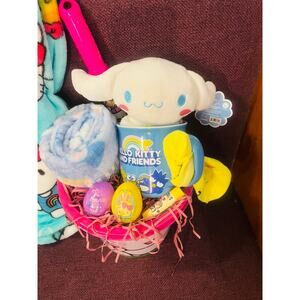 Hello Kitty Cinnamoroll Sand Pail two 40 by 50 throws Hello Happy , Bounce and Roll , Hk bubble wand , two plastic Easter HK eggs. Ceramic Hello kitty and friends mug , lip balm , one pair of socks and one small Cinnamoroll plush .Can modify bundle. Ready to ship . Thank you !