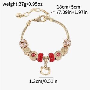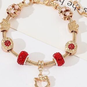 Hello kitty Gold and Red Charm Bracelet Pandora style beads