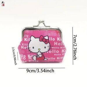 The Hello Kitty Print Mini Wallet with Kiss Lock Closure is a cute and playful accessory designed for women. With a pink color and animal print pattern featuring Hello Kitty, this small-sized wallet is perfect for adding a touch of charm to any outfit. The unique Kiss Lock closure adds a stylish touch, while the PU material ensures durability. Ideal for those who love the Hello Kitty character and want to show off their love for the iconic feline in a functional accessory.