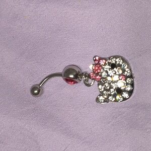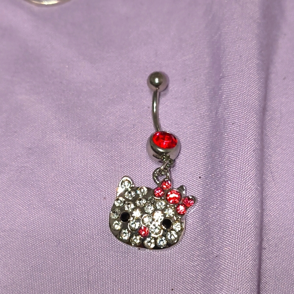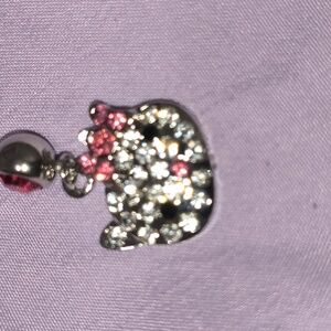14 gauge stainless steel brand new jeweled 'Hello Kitty', dangling belly ring.
