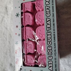 Brand New Hello Kitty Christmas glass and ice cuble gift set & glass ware shot glasses.