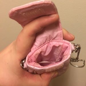 This can hold either a cell phone or lipsticks or (tampons if you want) whatever you want. Only used 3x. Has a small scuff on back but could be removed, not really noticeable. Come with a cute charm on the side.