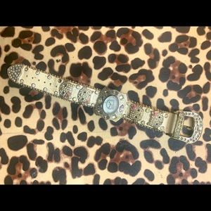 Beautiful in Good condition hello kitty watch, missing one of the biggest stones (shown last picture) and some of the little ones on hk faces but not very noticeable. Needs battery replacement.