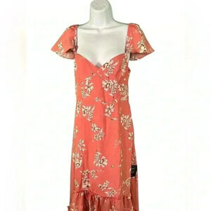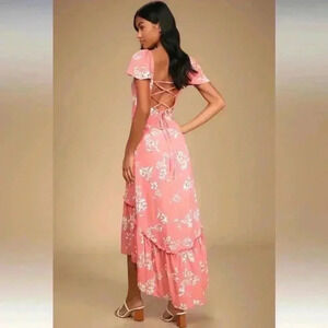 Hello to Love Pink Floral Print Lace-Up High-Low Maxi Dress Size Small