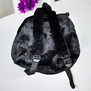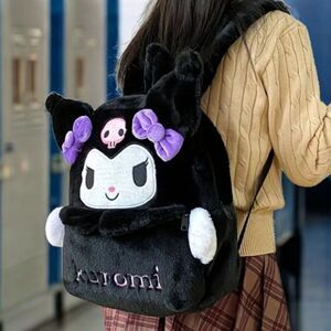 Hello Kitty Backpack Kuromi Embroidered Plush Furry Black 15" Book Bag Sanrio