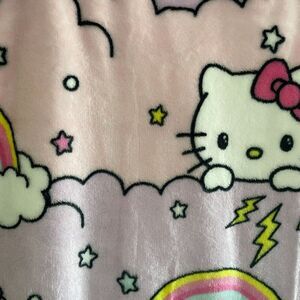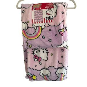 Hello Kitty Plush Throw Blanket 50" X 70" Pink Rainbows Clouds Stars Lightning